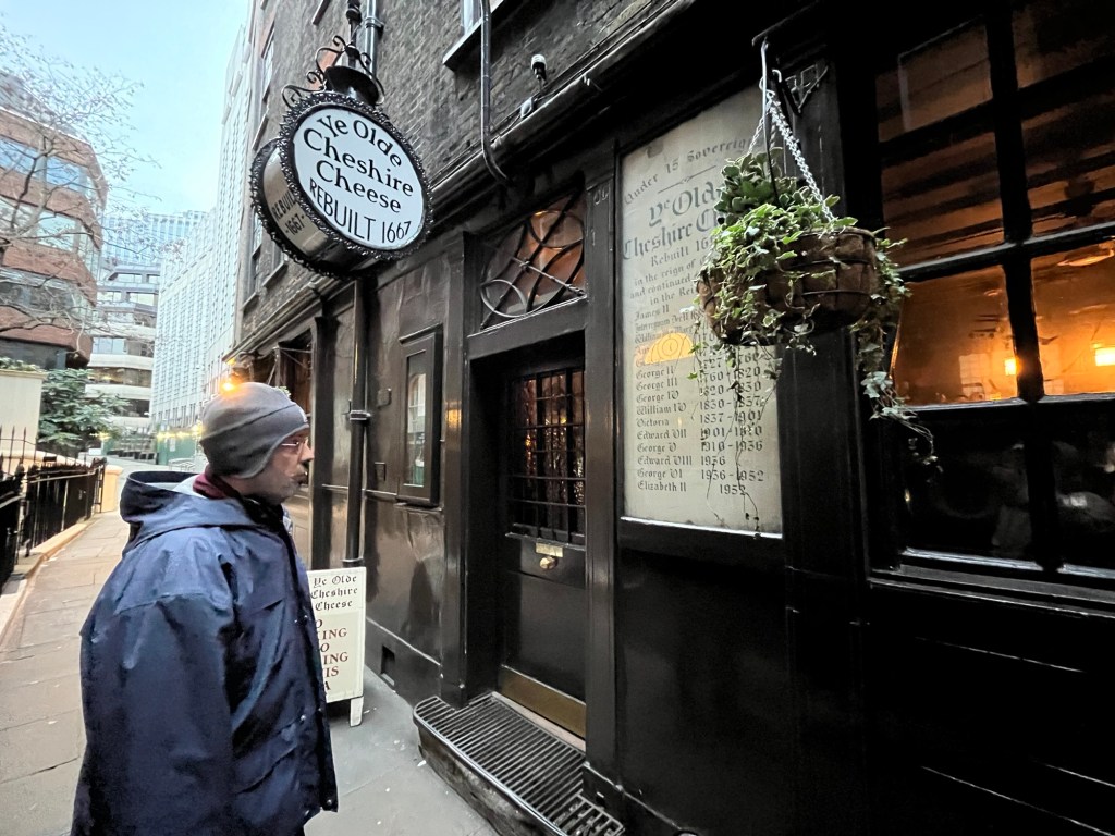 We had our early dinner and beers at Ye Olde Cheshire Cheese. This pub is located inside a building from 1667! There was a big fire around that time and this building was built right after it.