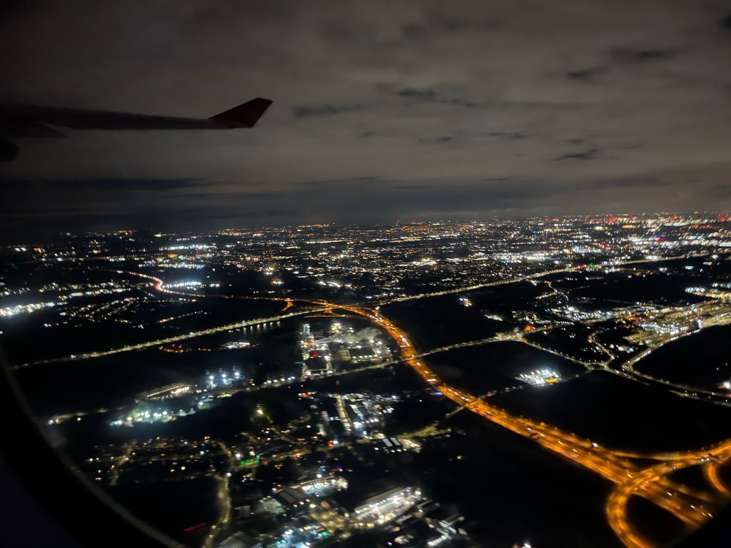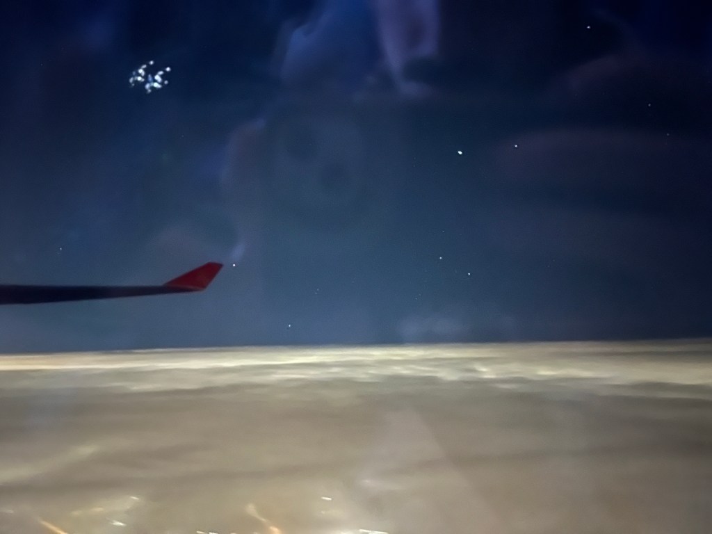 The night sky as we took off from London was gorgeous. You had the clouds illuminated by the city below with a gorgeous view of the stars above. I tried taking a couple of pictures, but they do not do it justice!
