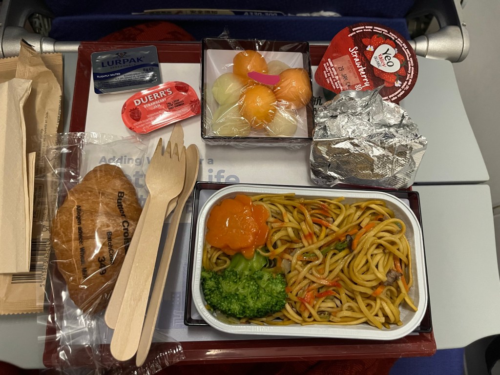 For the second meal they served us noodles, a croissant, and fruit. It’s like they knew it was breakfast time in London, but also dinner time in Shenzhen.