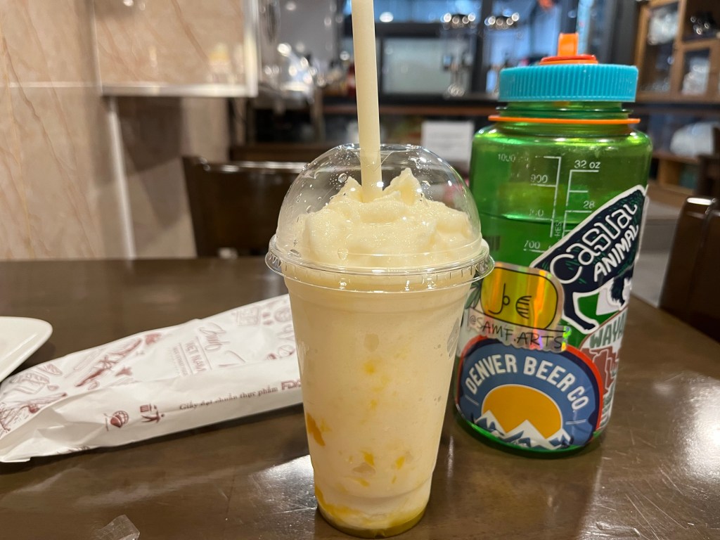 I also got myself my first smoothie of the trip! A very good mango smoothie that had mango chunks. Now unfortunately… I’m pretty sure this smoothie had milk in it and that definitely had its affects on me today.