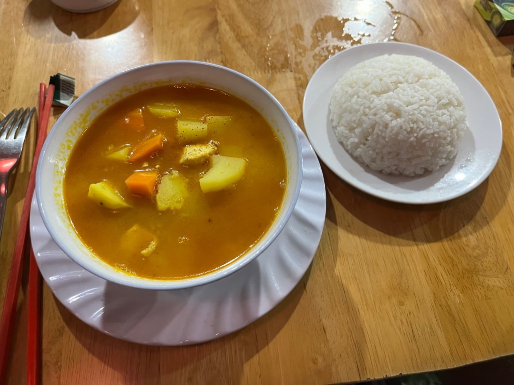 I ended up having a chicken curry with com (basically just rice) and 3 beers for only 65,000 Dong (under $3)!