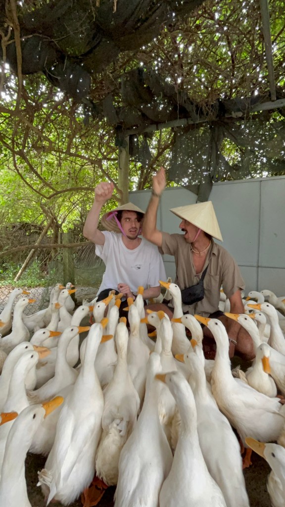 After we confirmed we were willing to pay 100,000 Dong for something we knew nothing about… we strapped on some fancy shoes and rice hats and made our way to meet some ducks!