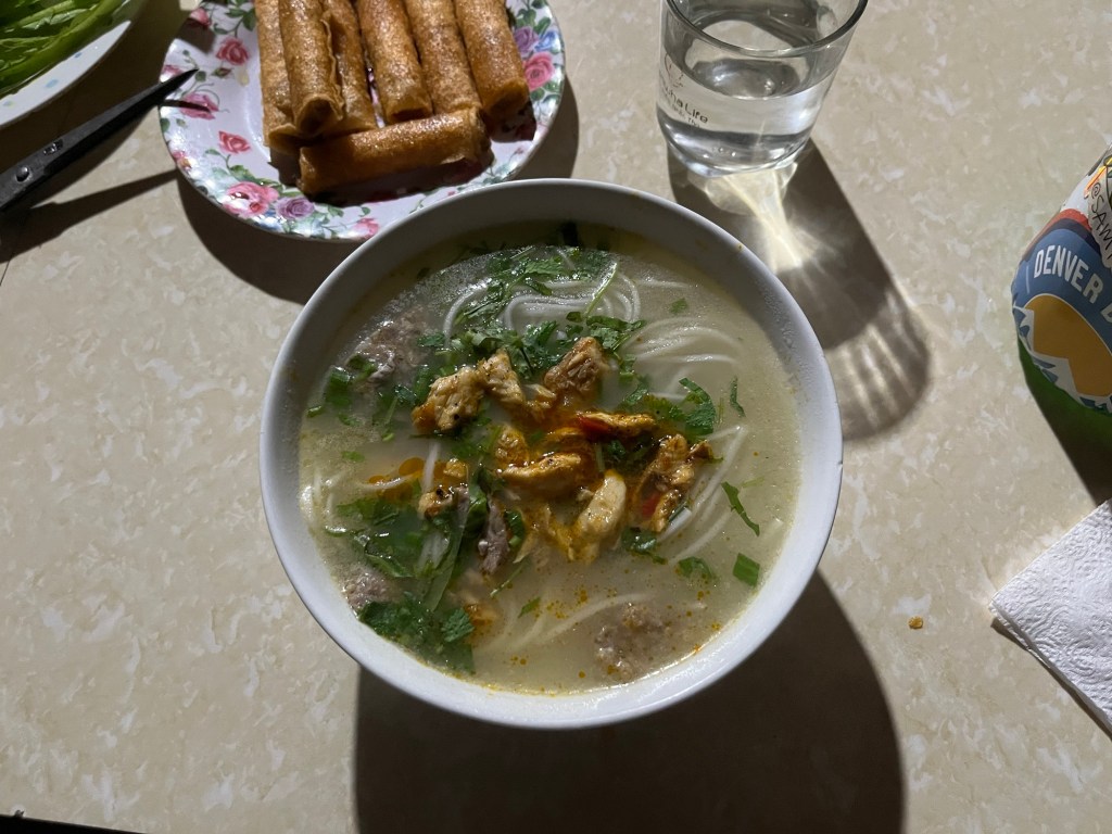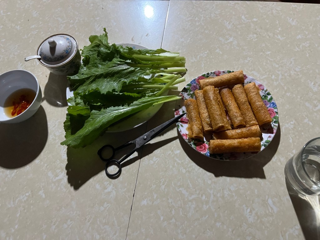 This restaurant was truly just in someone’s house! And for 75,000 Dong each we had 10 spring rolls and 2 massive bowls of noodle soup!
