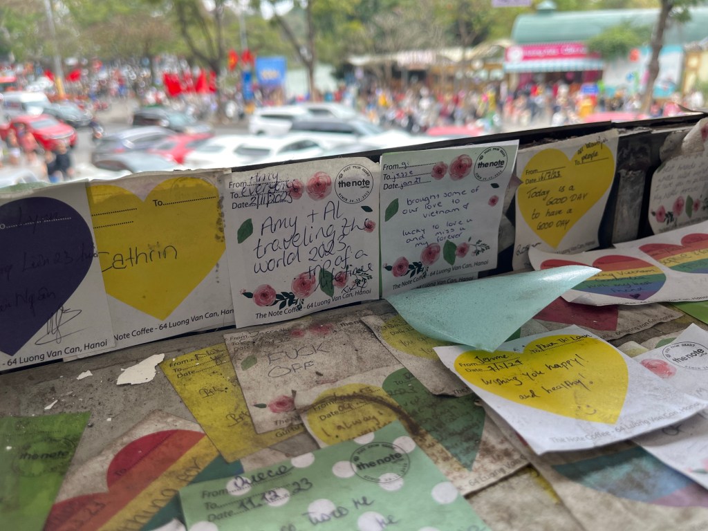 It was now time to wander (one of my favorite activities)! Nearby there’s a lake with a couple popular tourist destinations. One of them being the Note Café, which is a cafe covered ceiling to floor in notes people have written!