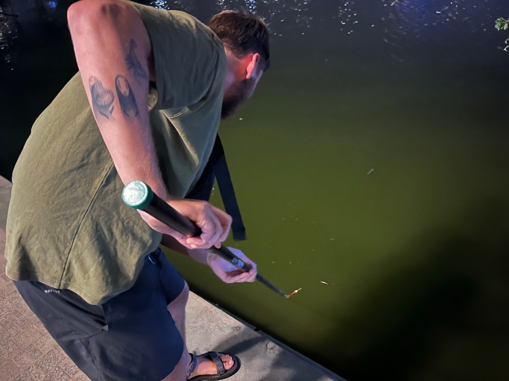 While we were sitting in one spot, an older man with a fishing pole came and sat with us. He was trying to talk with us but could only speak Vietnamese, which made for a strange and awkward situation…