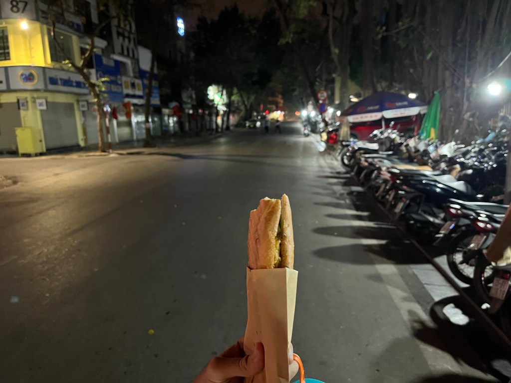 I guess this tree was full of lures and he wanted us to help with them all. After one more we got a bit tired of this man’s antics so we walked back to our hostel and got a Banh Mi on the way!