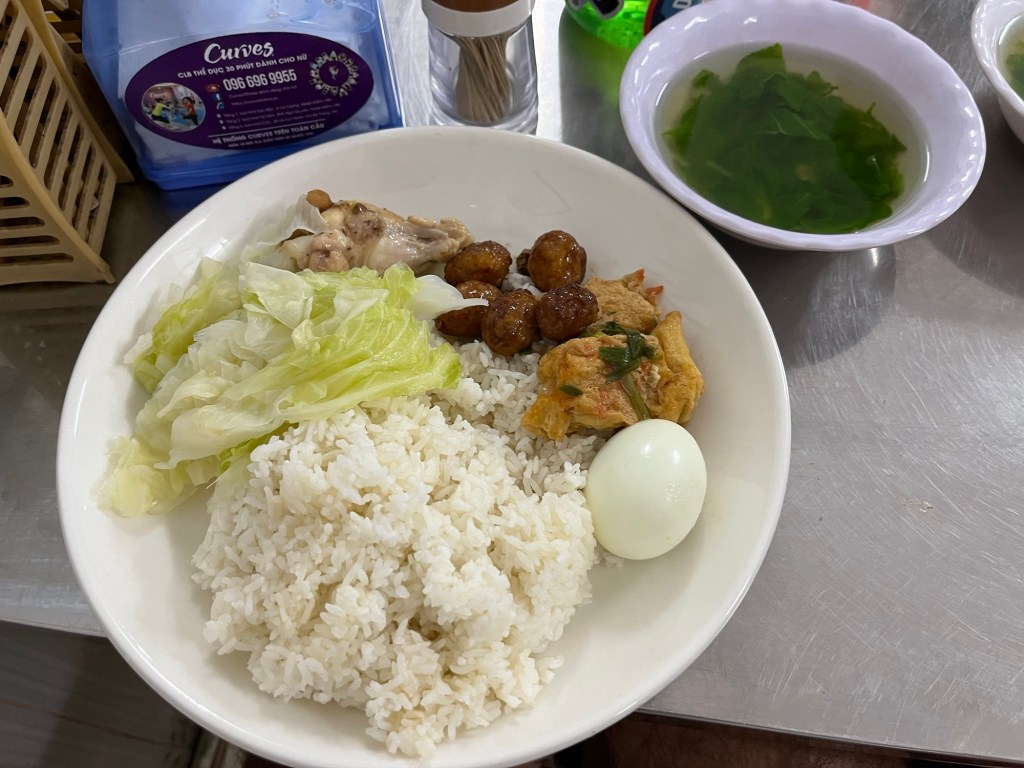 We found a hole in the wall Com (rice) restaurant where you got to select all the different meats and vegetables you wanted with the rice! This was like my favorite meal in Dalat that I got with my friend Tom!