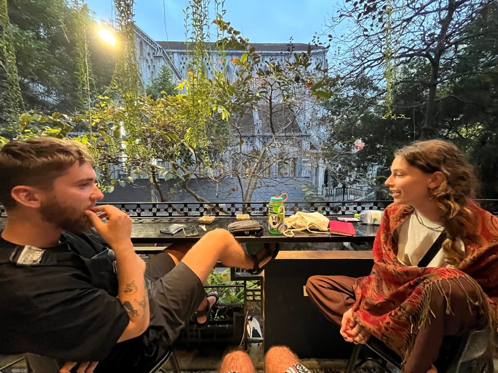 We eventually decided to head back to the hostel I was staying at because there was a balcony hangout on the second floor.