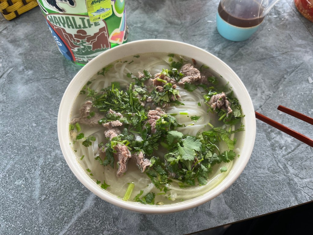 For 50,000 Dong, I had a big bowl of Bun Pho with beef and enjoyed a nice view of the lake!