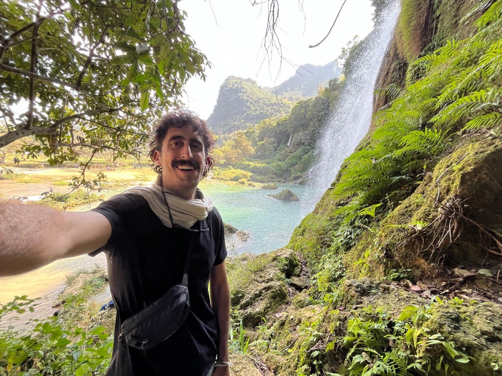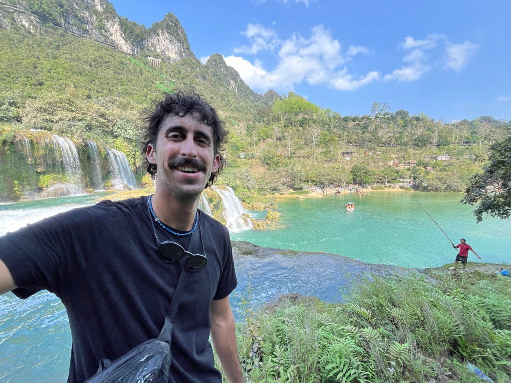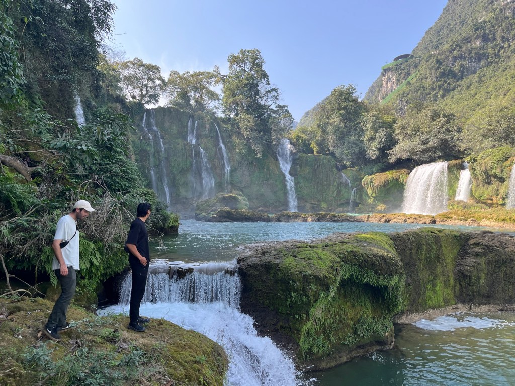 Originally they were planning on spending the night near the falls. But they ran out of cash and there were no ATMs, so they booked a night bus for tonight, after they arrived back in Cao Bang.