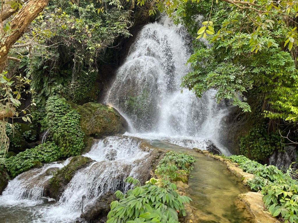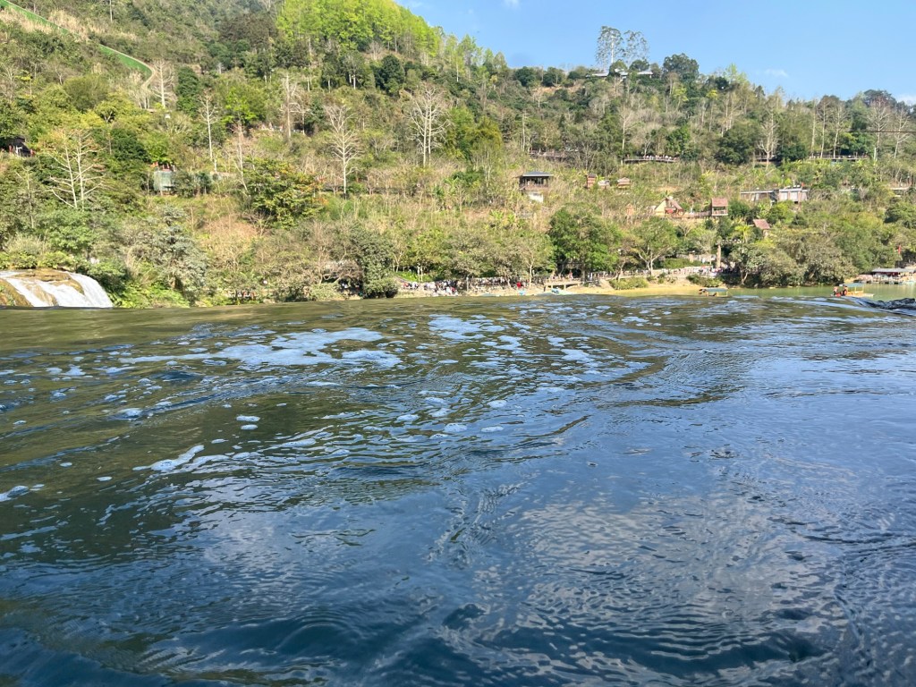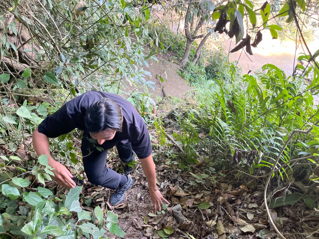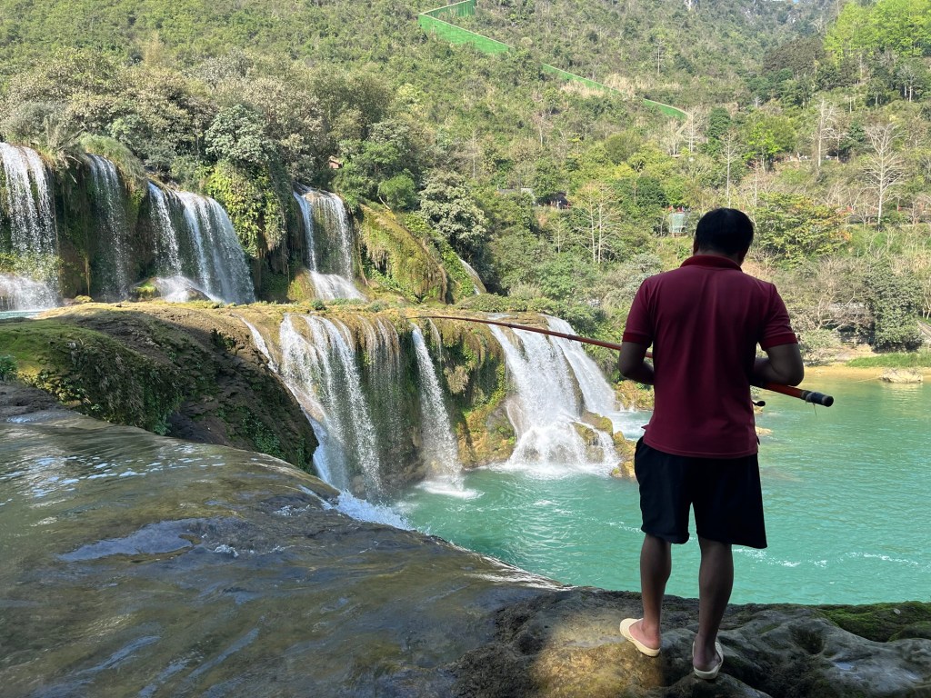 We could tell the locals used this area to hang out and got confirmation of that as we went back down a little ways and onto a different path that took us to the top of the waterfall and saw a guy fishing!