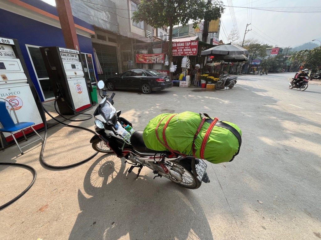 I stopped for gas at the halfway point, 60km in, took a quick break and then kept chugging along! With around 30/40km left I pulled off to the side of the road to give my butt another break. I was semi questioning why I decided to keep driving after Ha Giang, but I was already so close to my new end destination that there was no point in stopping now.