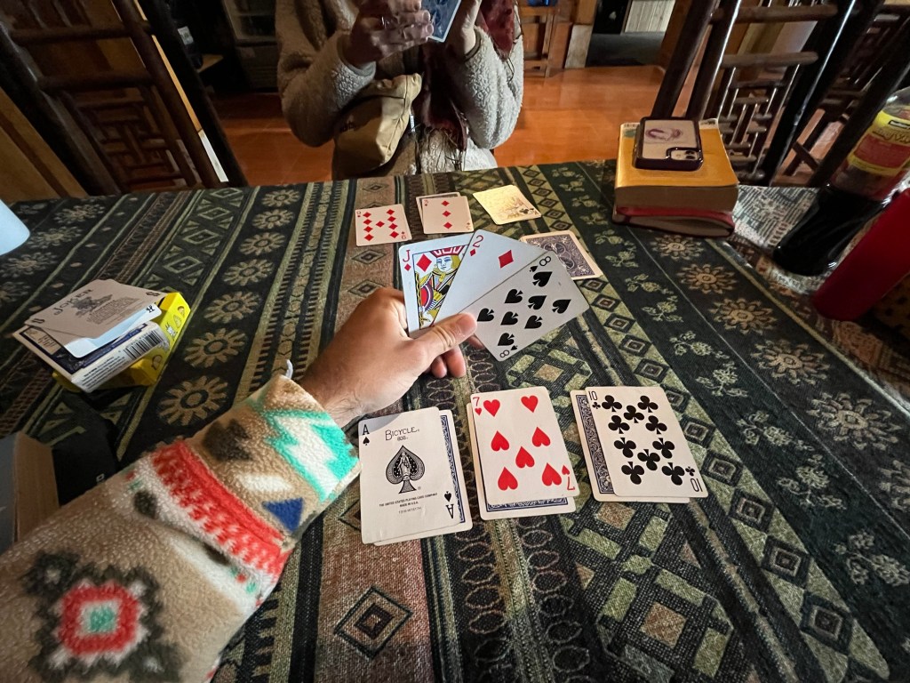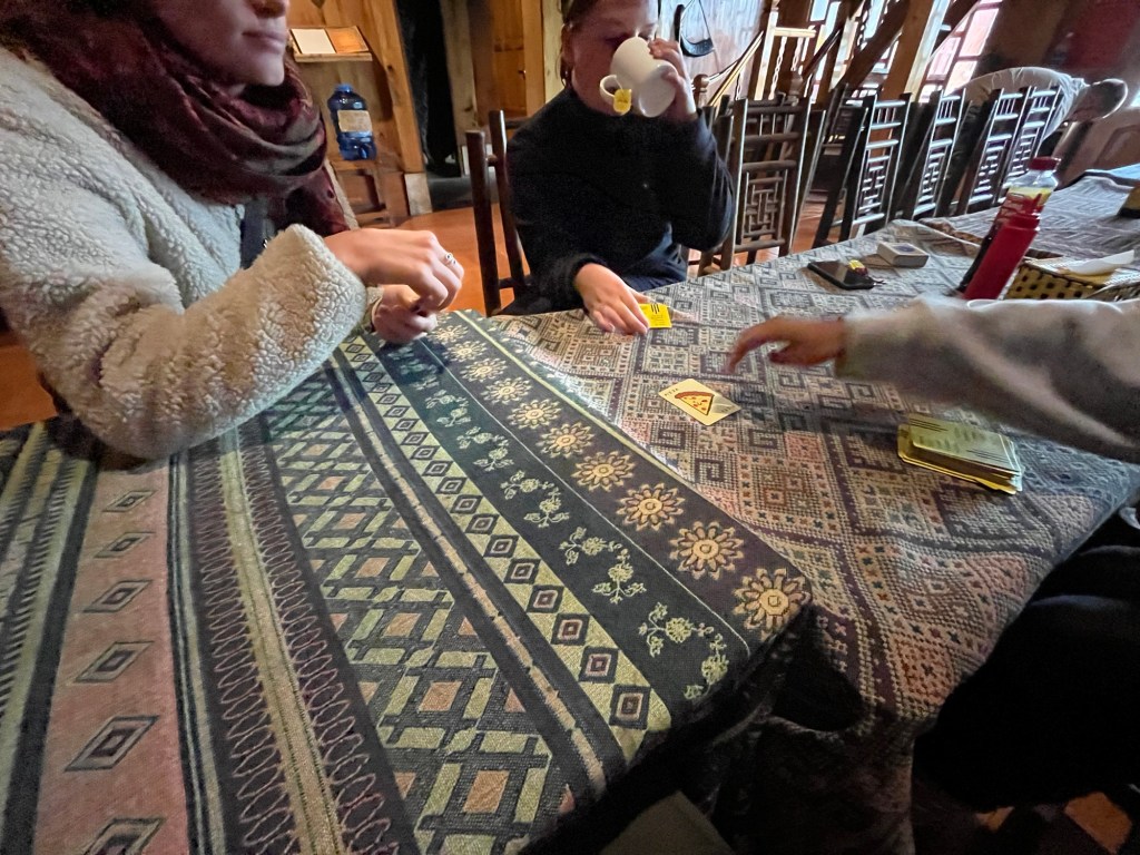 We then spent the afternoon playing cards! I taught Lea and two new friends, Marie and Juliet from France, how to play Shithead and Taco Cat Goat Cheese Pizza!
