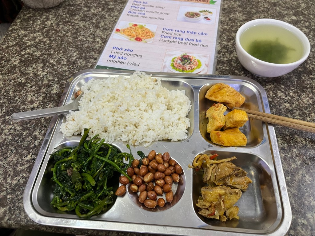We found a cheap restaurant and I got a nice tray of Com! This has to be my favorite meal in Vietnam. I love walking up and just pointing at foods and experience eating like a local.