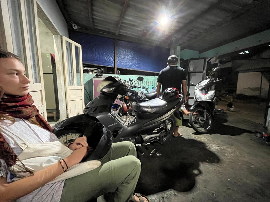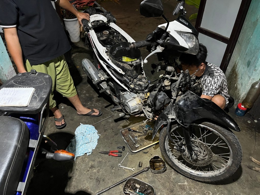 They then proceeded to completely strip apart the motorbike which was a stressful process to watch. Screws were being tossed around, plastic sounding like it was breaking, but I had to trust that they knew what they were doing!