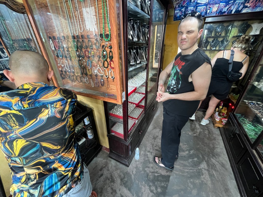 It was a very hot day with the temperature reaching around 90 degrees Fahrenheit (30 degrees Celsius). So by the time we got to the ring shop, we were sweating buckets!