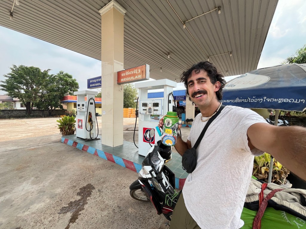 The first gas station I tried to stop at ended up not being open… and there appeared to be some sort of early morning party going on. I wanted to take a picture because there were easily 100 people hanging out at long tables enjoying each other’s company. But I didn’t want to be rude. I’ve seen a lot of these “parties” as I’ve driven through Laos so far and I’m not sure what they’re for yet!