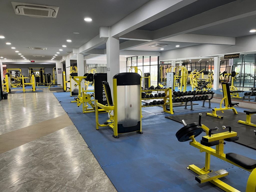 The gym for one day cost 30,000 Kip (just over $1) and it was super nice! It was in a strange location and was on the 3rd floor of an almost empty building. The bottom of which was a small shopping mall!