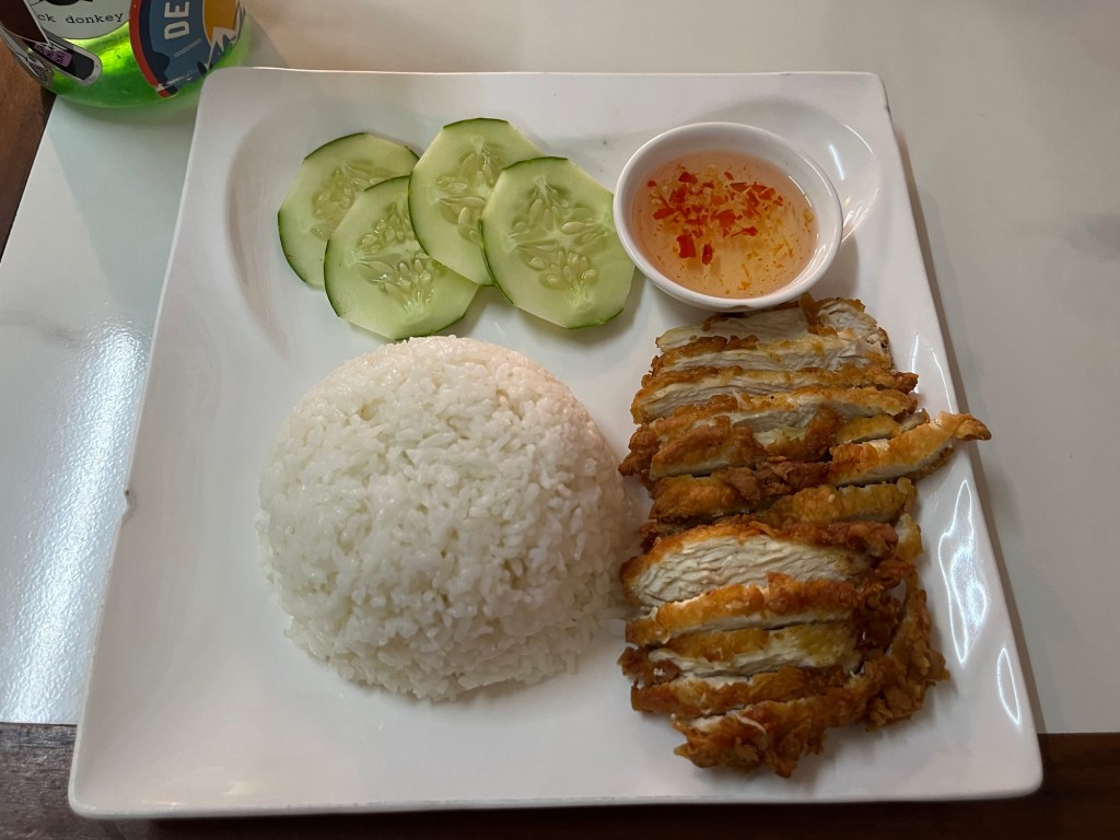 I took a shower and then was craving food. So I wandered around till I found something. It was at an odd time, just before the dinner hour, so it took a few tries to find something open. But eventually I found a winner and devoured a plate of crispy chicken and rice!