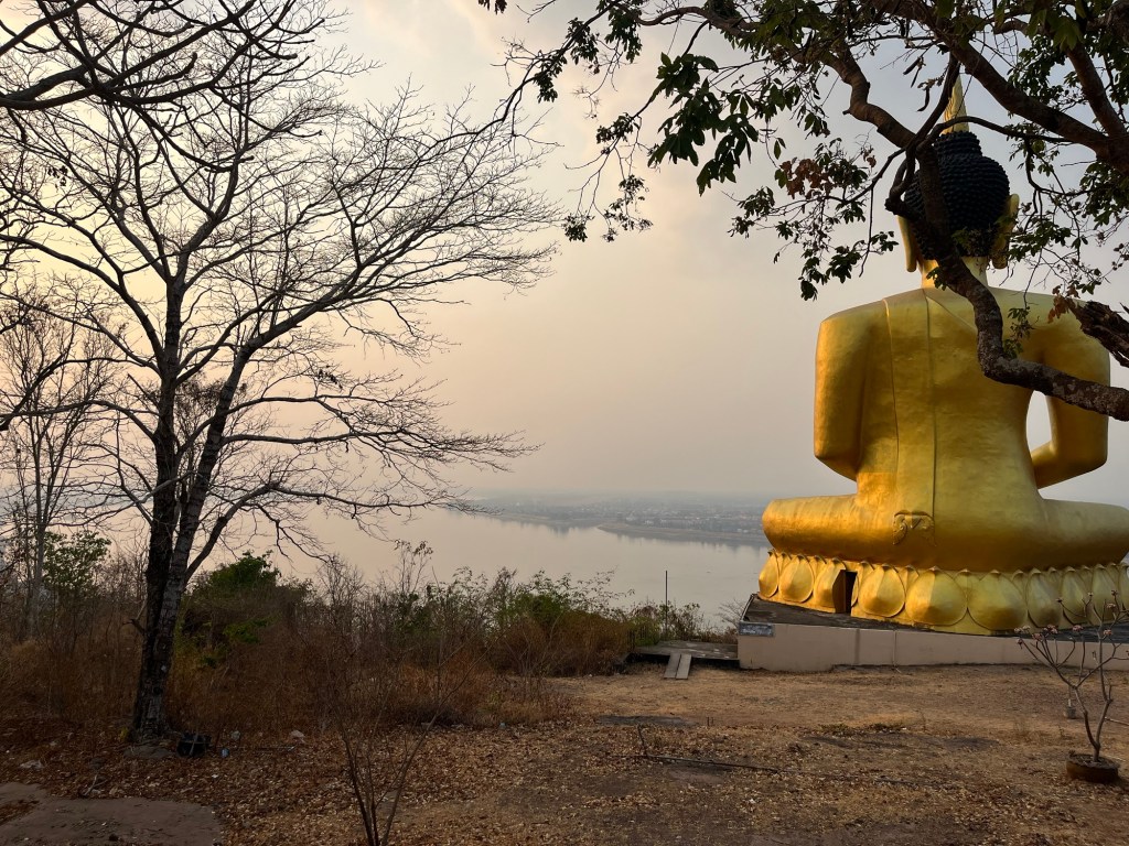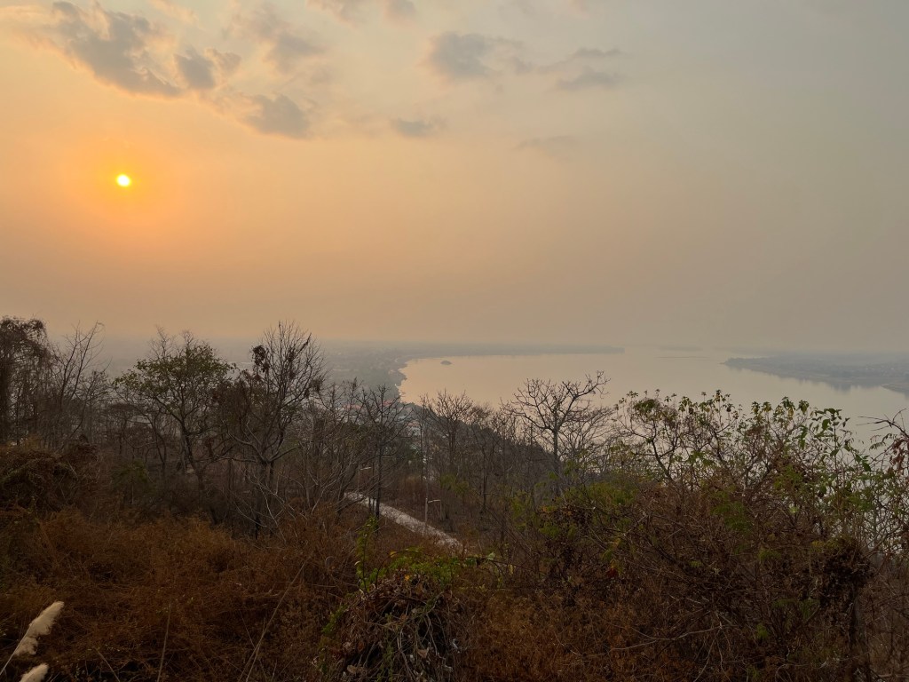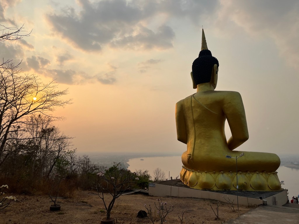 After an 18 minute ride, I arrived at Wat Phousalao. This is a very large golden Buddha overlooking the city and the Mekong River! It’s also a prime destination for watching the sun set, which you all probably know by now that I’m a sucker for!