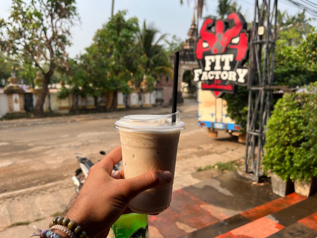 I finished up a great workout and enjoyed a refreshing protein shake! There’s a temple directly across the street, so I wandered over to check it out. I didn’t step in because the monks were at work rebuilding things and I was not dressed appropriately. But it looked like it had a gorgeous lawn hidden deep within.