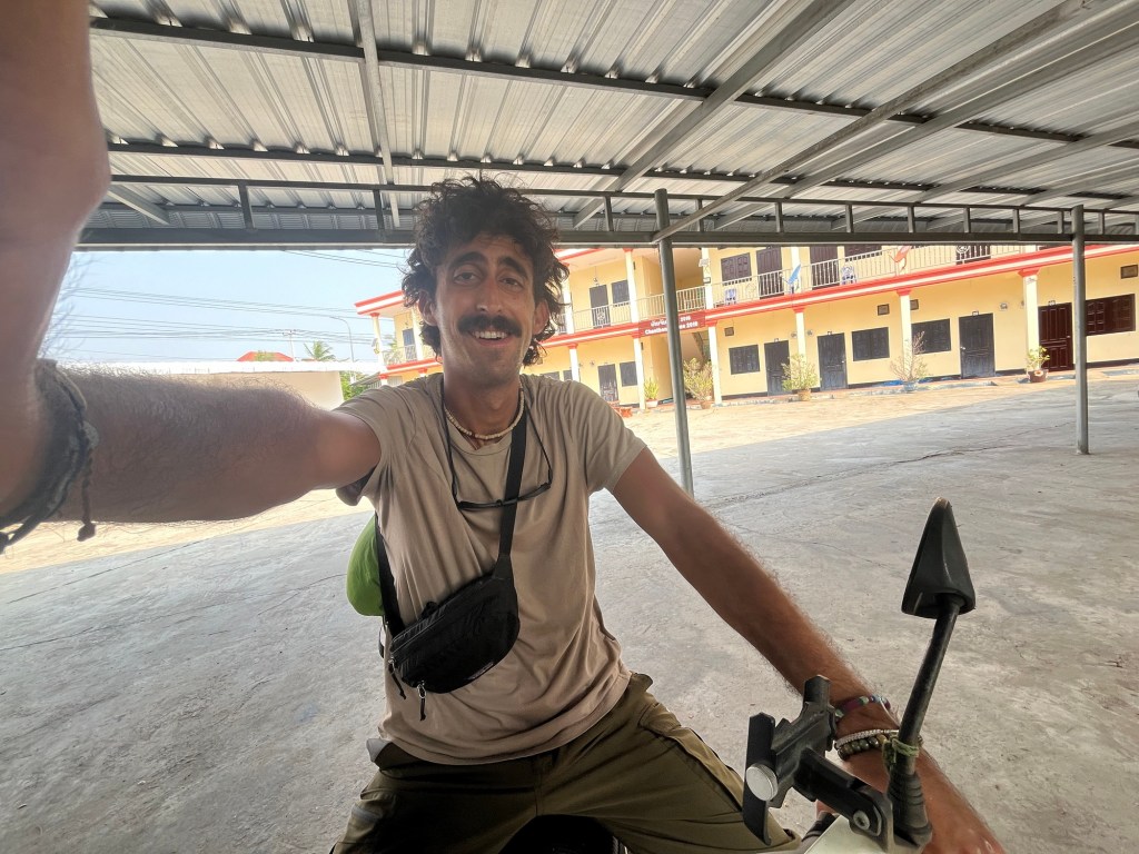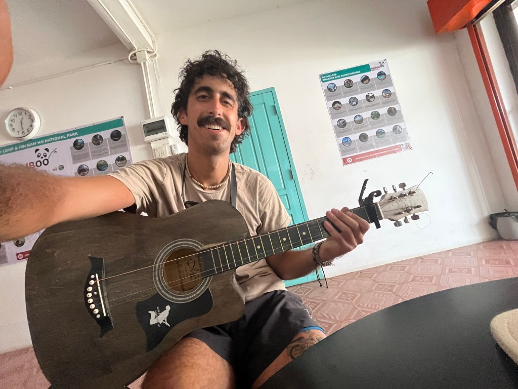 I arrived at Bamboo Hostel Thakhek just before noon! I checked in and noticed a guitar behind the counter! So after changing into shorts I started strumming away to reward myself on a good, safe drive!