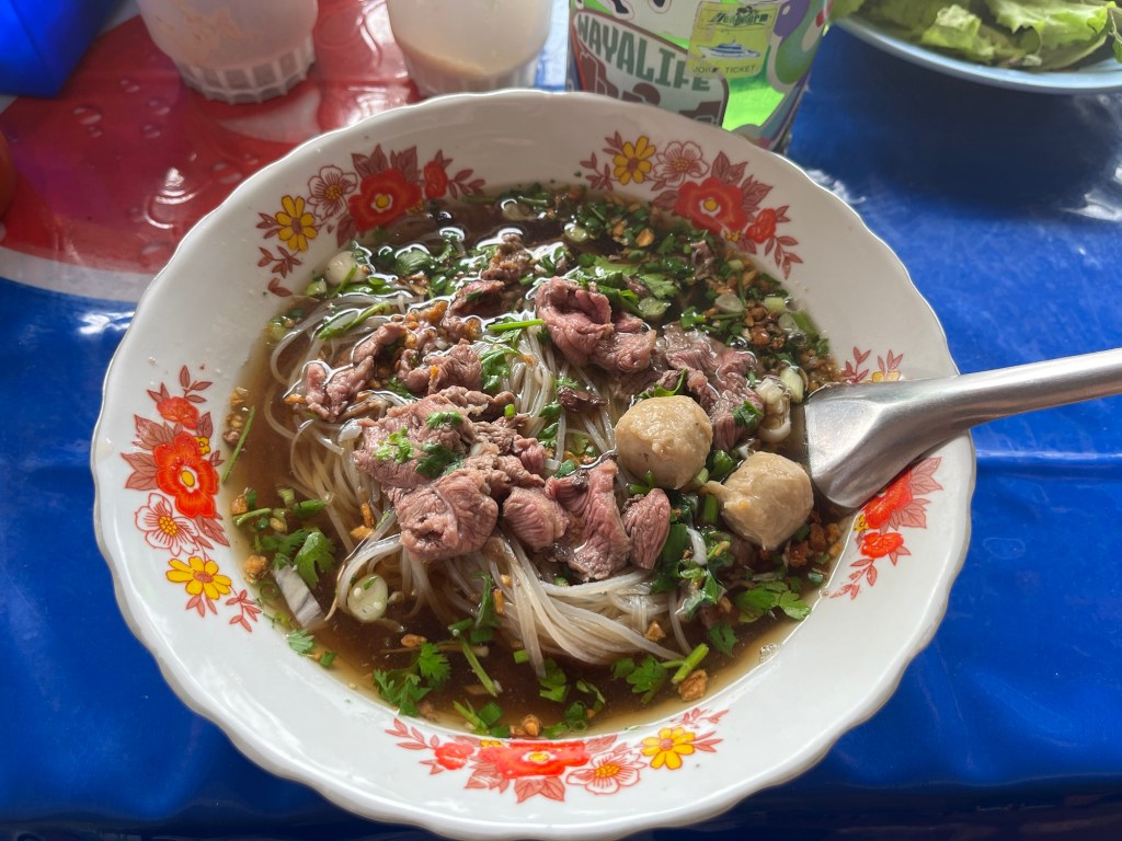 As it kinda seems is becoming a trend, the first two restaurants I went to were closed! So I kept wandering and found a noodle soup restaurant facing the Mekong River and sat down for a bowl!