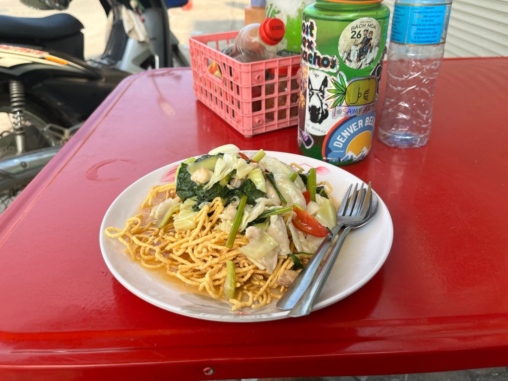 I was very excited to finally have food and I got a crispy noodle with chicken! I also had a nice view of one of the churches that is well known in Savannakhet.