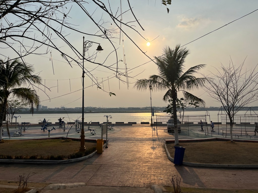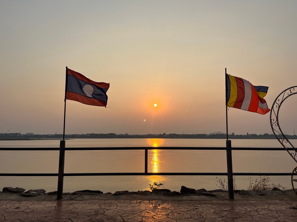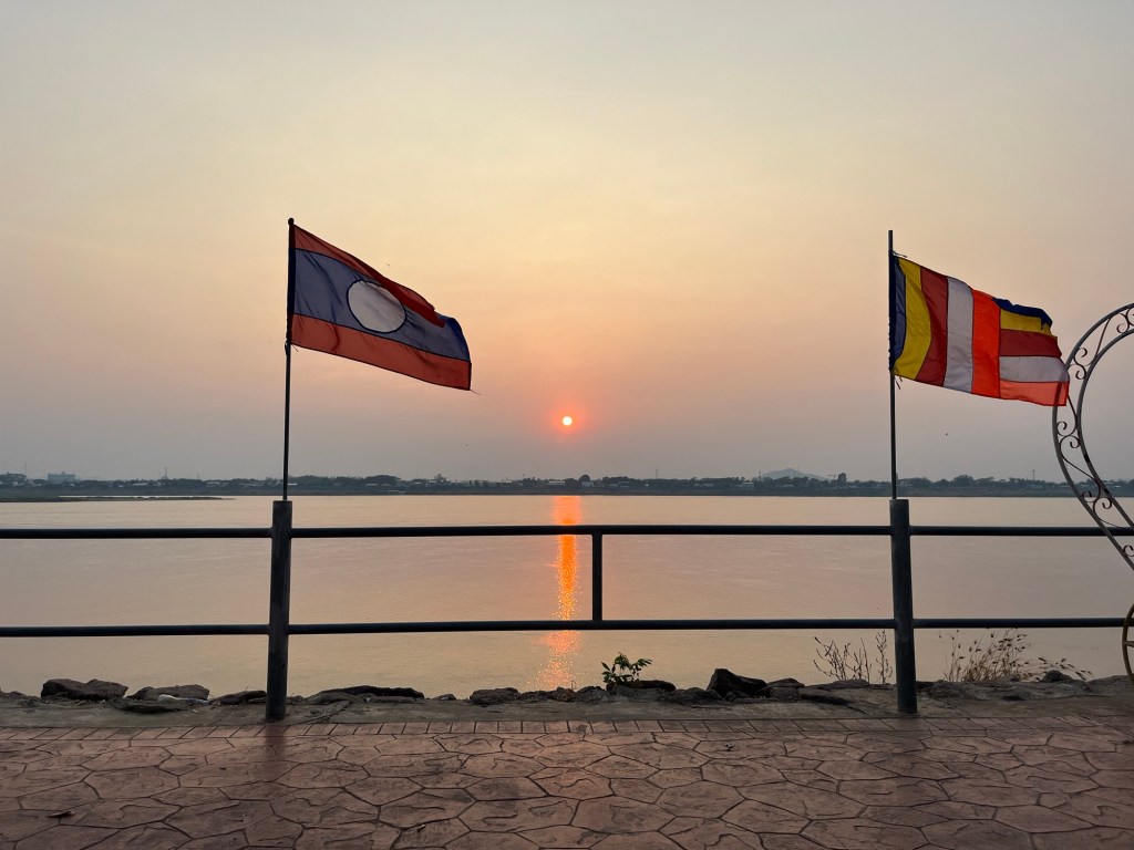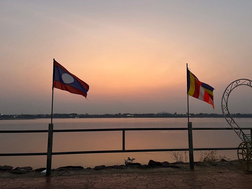 I then wandered to the riverside where a gorgeous sunset was happening and plopped down on a park bench to enjoy reading along with the sunset! Laos has really had some spectacular sunsets so far and I’m loving that I’ve been able to soak up every one of them!