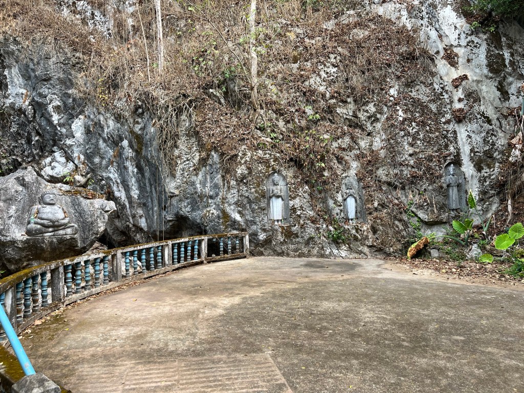 The entrance had some stone carved Buddhas and you could take a side path to a temple, but I opted to go right into the belly of the beast!