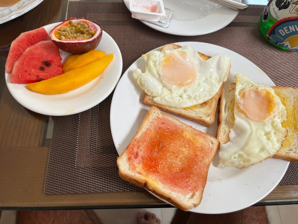 For dinner I went to a nearby food stand that was selling very cheap and comedically large Banh Mi! I ended up getting a chicken Banh Mi, filled with avocado, lettuce, grilled onions, and garlic, with a Mango smoothie for 60,000 Kip in total!