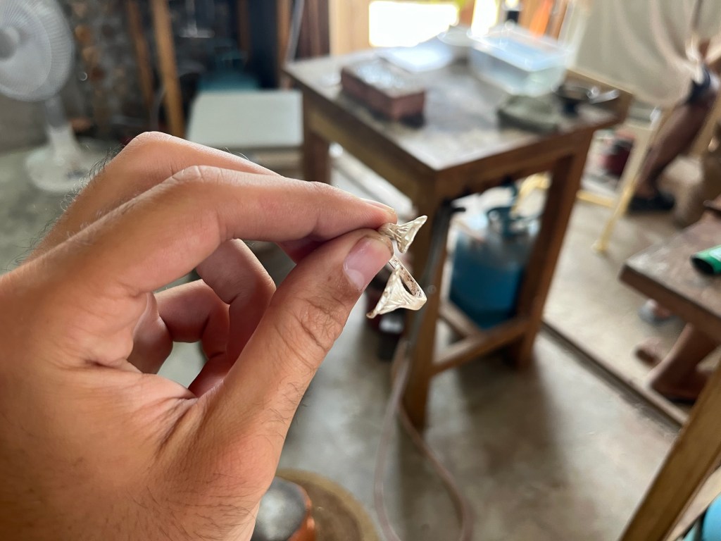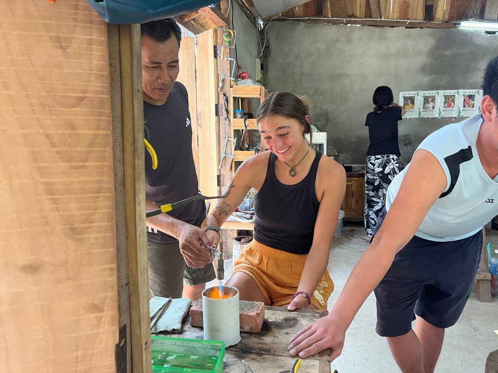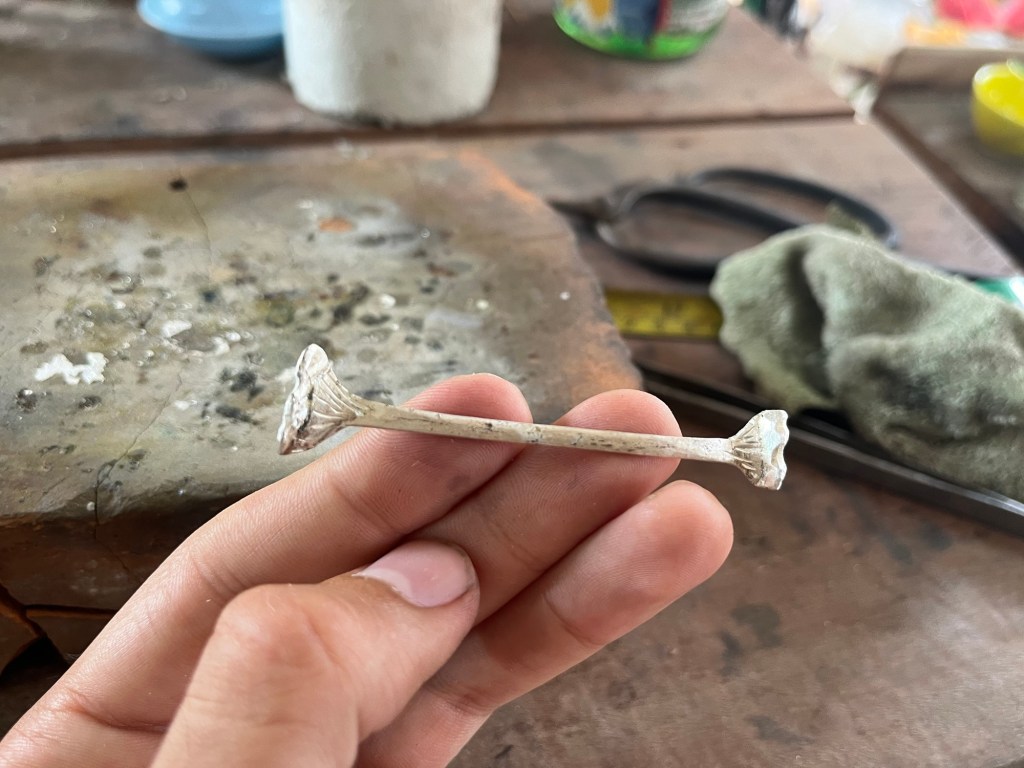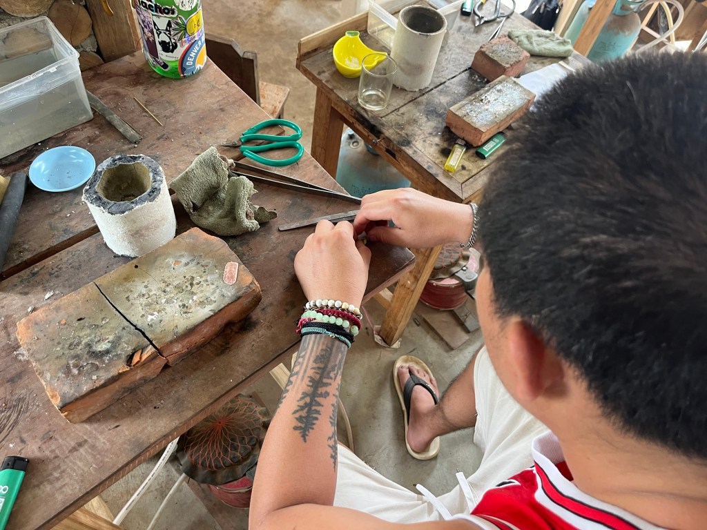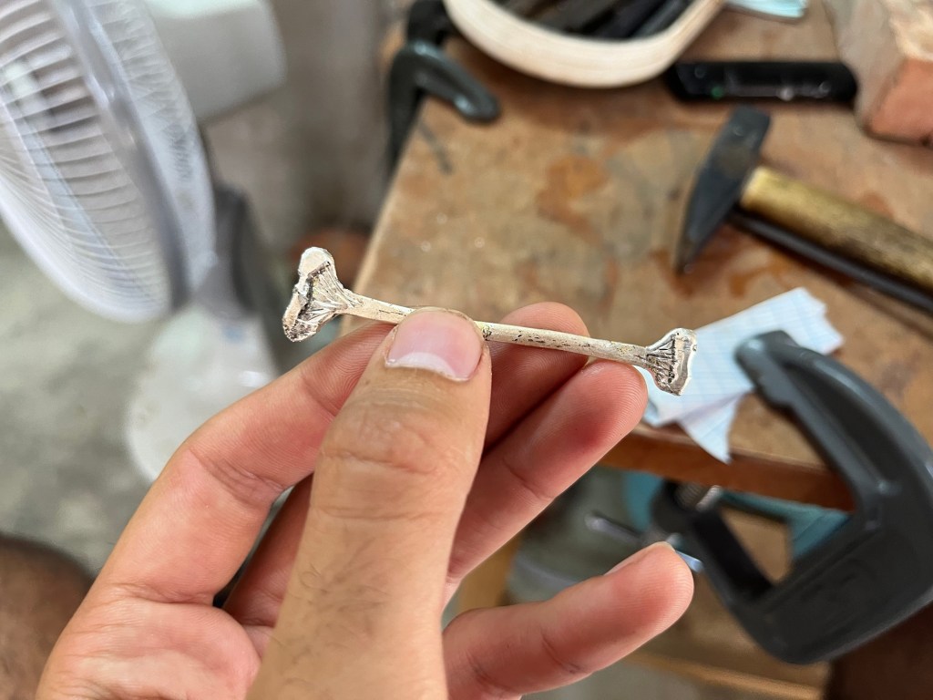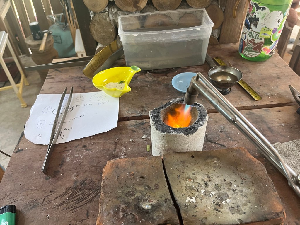 The process was very hands on and pretty intense! You start out by melting your 10 grams of silver with a very hot blow torch. Then once it’s ready, you quench the silver in water before hammering it out into a rectangle! It was pretty cool putting some science class to use!