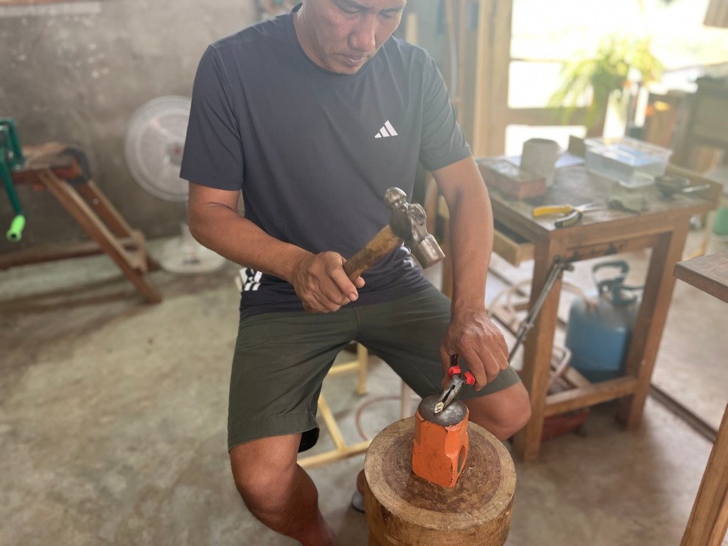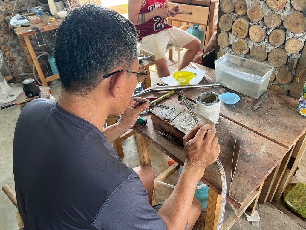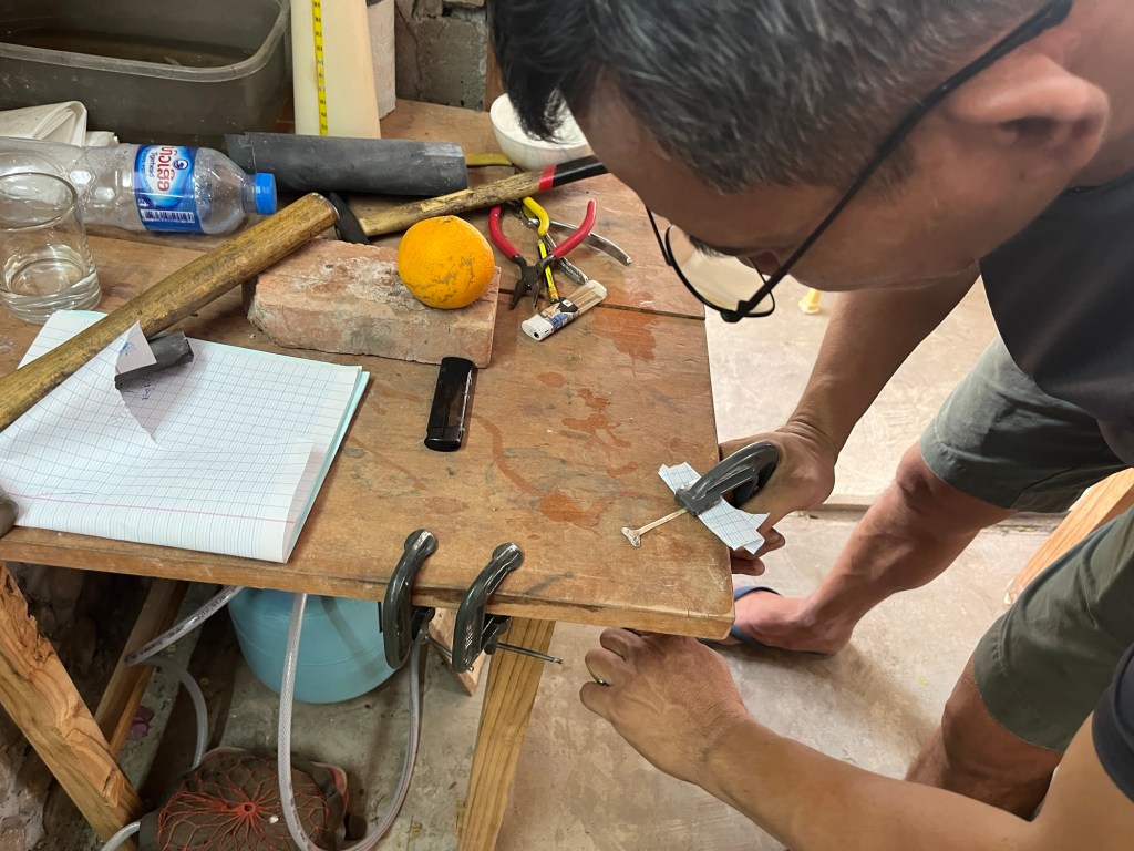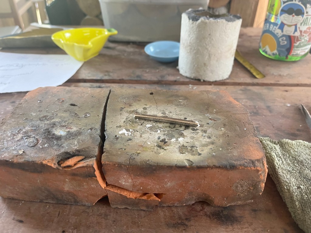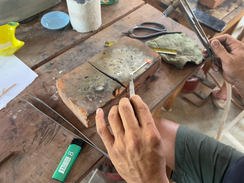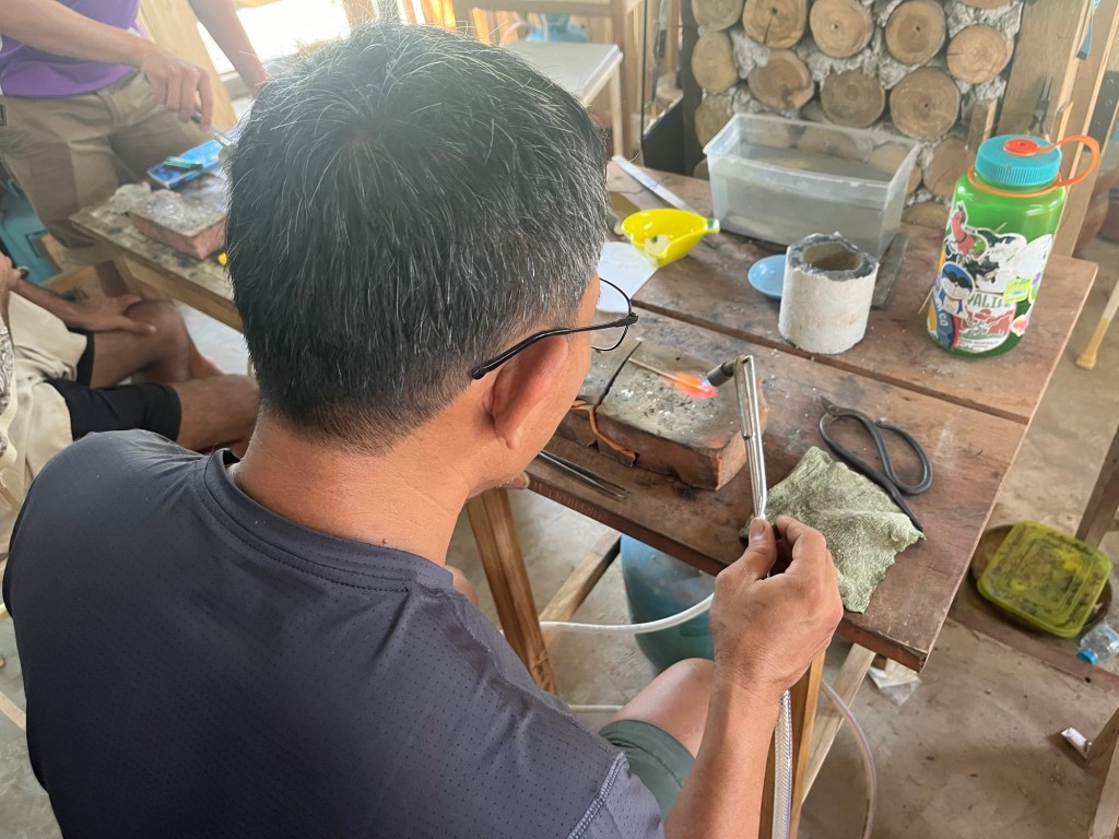 The process was very hands on and pretty intense! You start out by melting your 10 grams of silver with a very hot blow torch. Then once it’s ready, you quench the silver in water before hammering it out into a rectangle! It was pretty cool putting some science class to use!