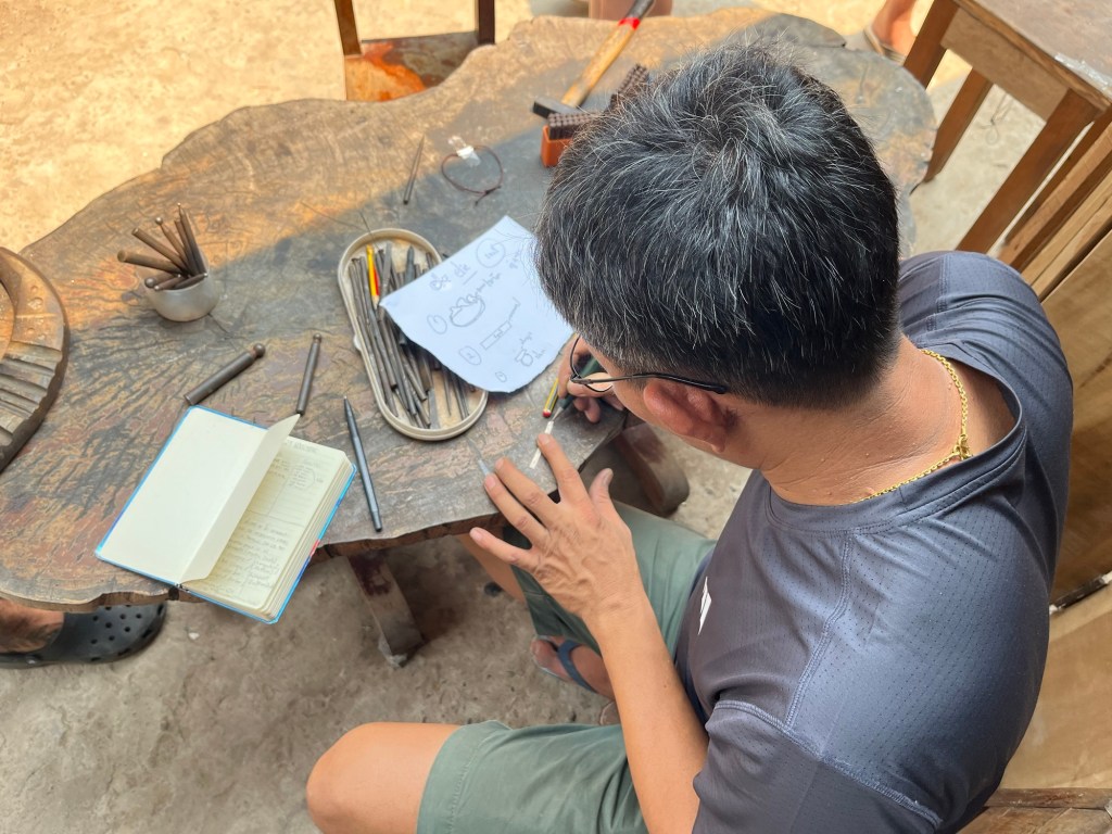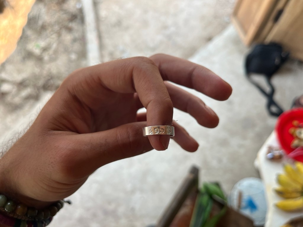 The second ring I made was a toe ring. At the beginning of the class the teacher that could speak English wrote down all of our names in Laotian. So I engraved my name into this ring!