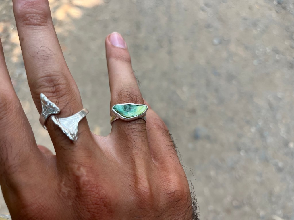 The last ring I made had one of the coolest processes to it! We actually used a soldering technique that used salt that comes from lakes! It made for a satisfying viewing and ends up turning into a very cool ring with a neat green (of course) gem on top!