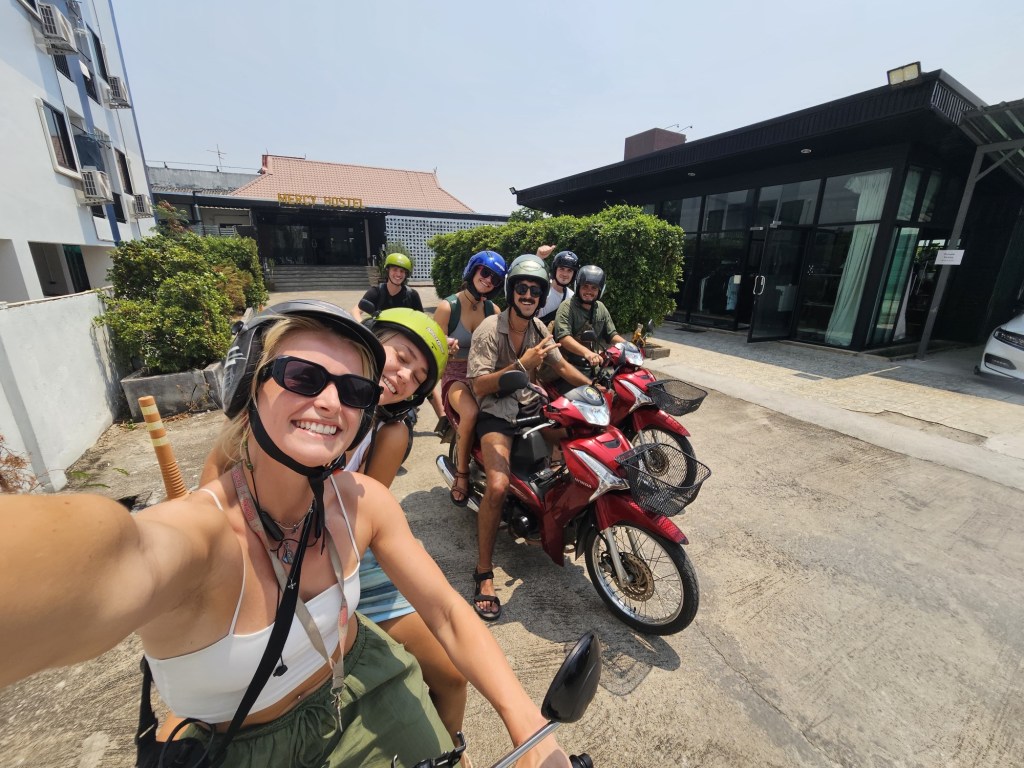 We then made our way back to the hostel where we met back up with the rest of our crew. Our plan for the day was to go to the Blue and White temples that are on opposite sides of town. So we rented motorbikes to help out with this conundrum!