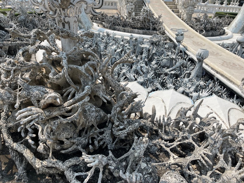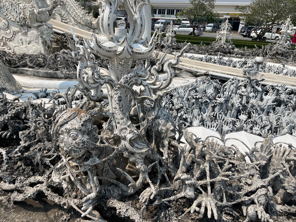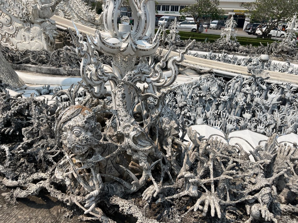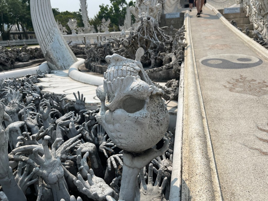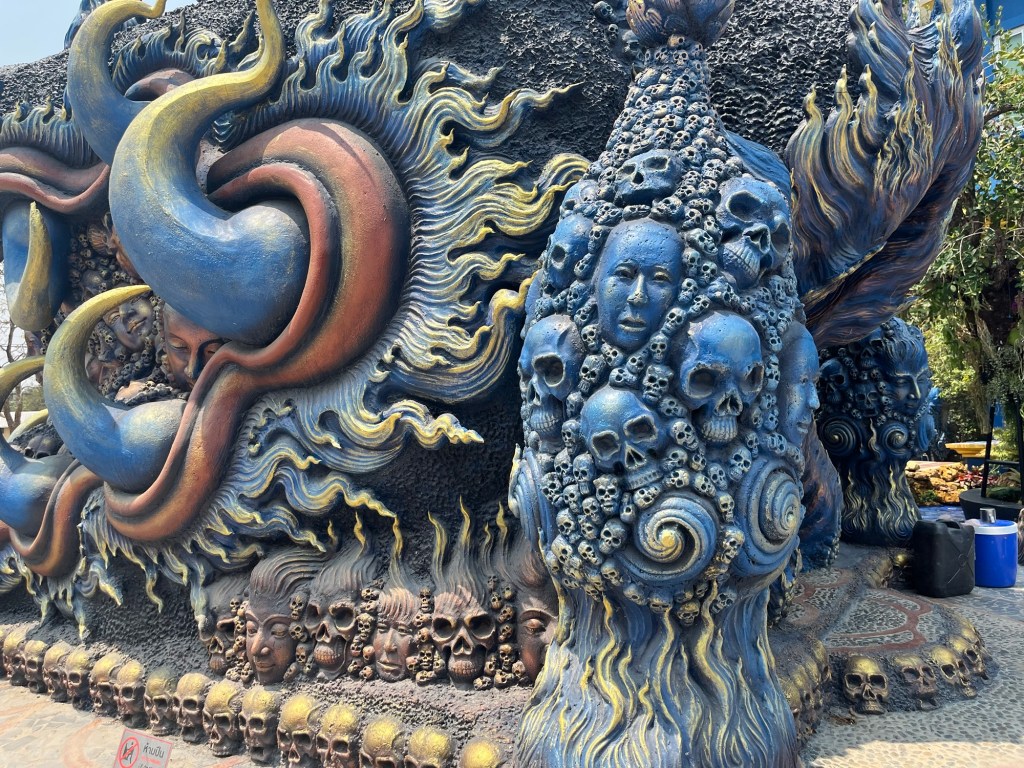 On the opposite side of where we entered, there were more skulls and symbols of death. This is something common at temples, especially the white temple we’d be visiting later that day.