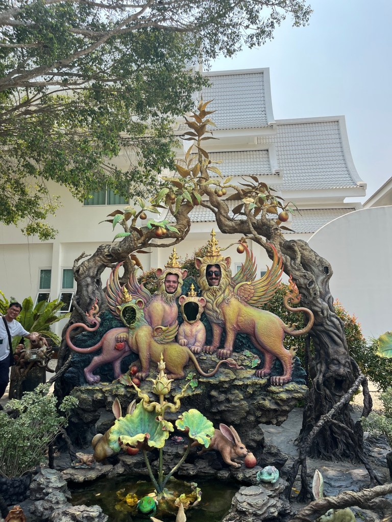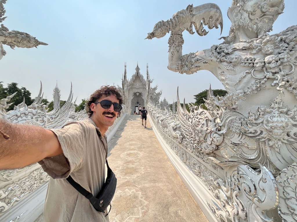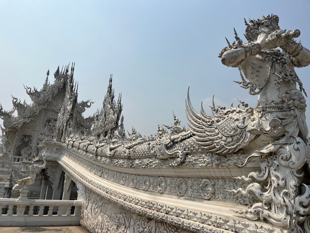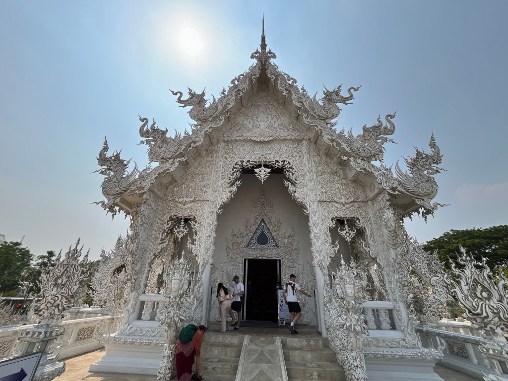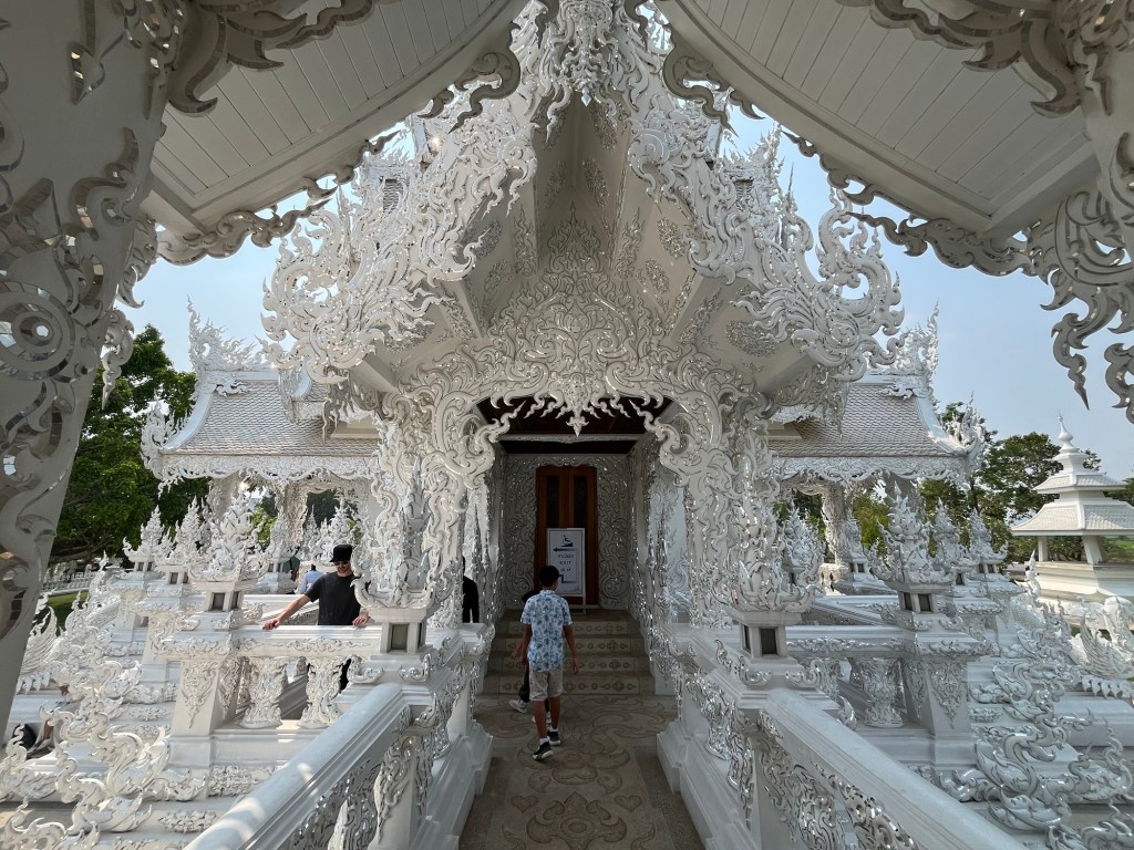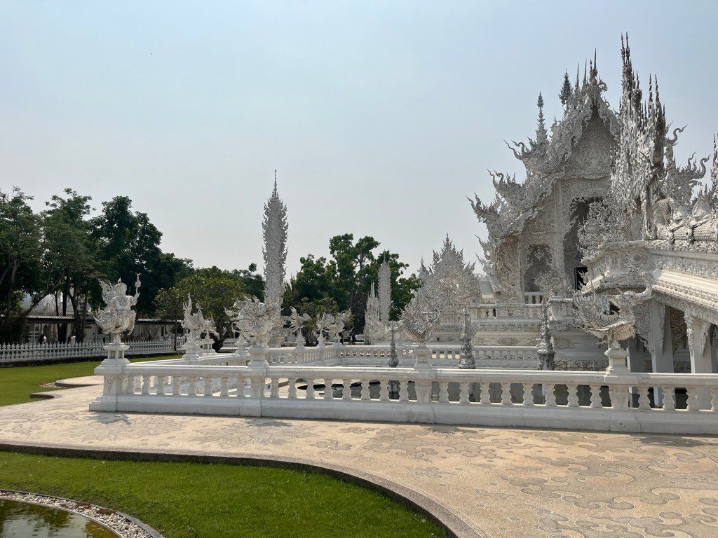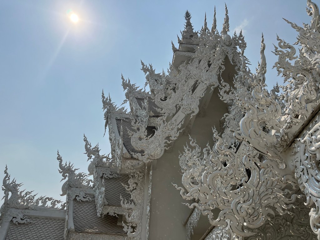 The day had been great so far… however it was starting to get over 100 degrees Fahrenheit!! The heat was definitely draining us, but we pressed on and went almost 30 minutes south to the beautiful White Temple! This temple unfortunately wasn’t free, but was only 100 Baht (around $3) to enter.