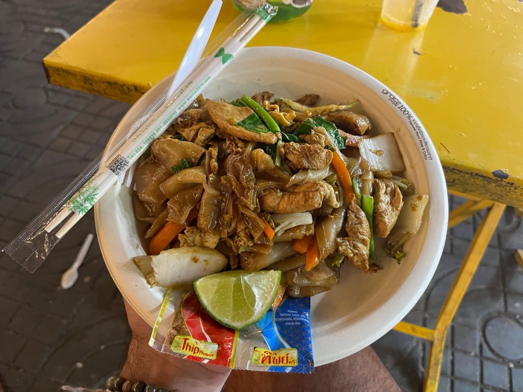 We eventually found two spots though. One to get a simple egg noodle soup for 50 Baht and a place close to our hostel selling Pad Thai for 40 Baht… which means I’ve officially had my first Pad Thai in Thailand this trip!
