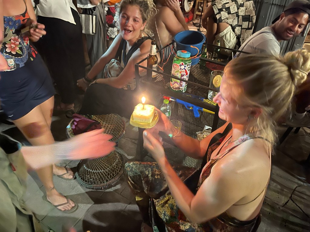 After averting this crises, we hopped in a grab to the jazz bar we went to a couple days ago! It was my friend Abi’s birthday, so we went to surprise her with a small (but thoughtful) 7-eleven birthday cake.