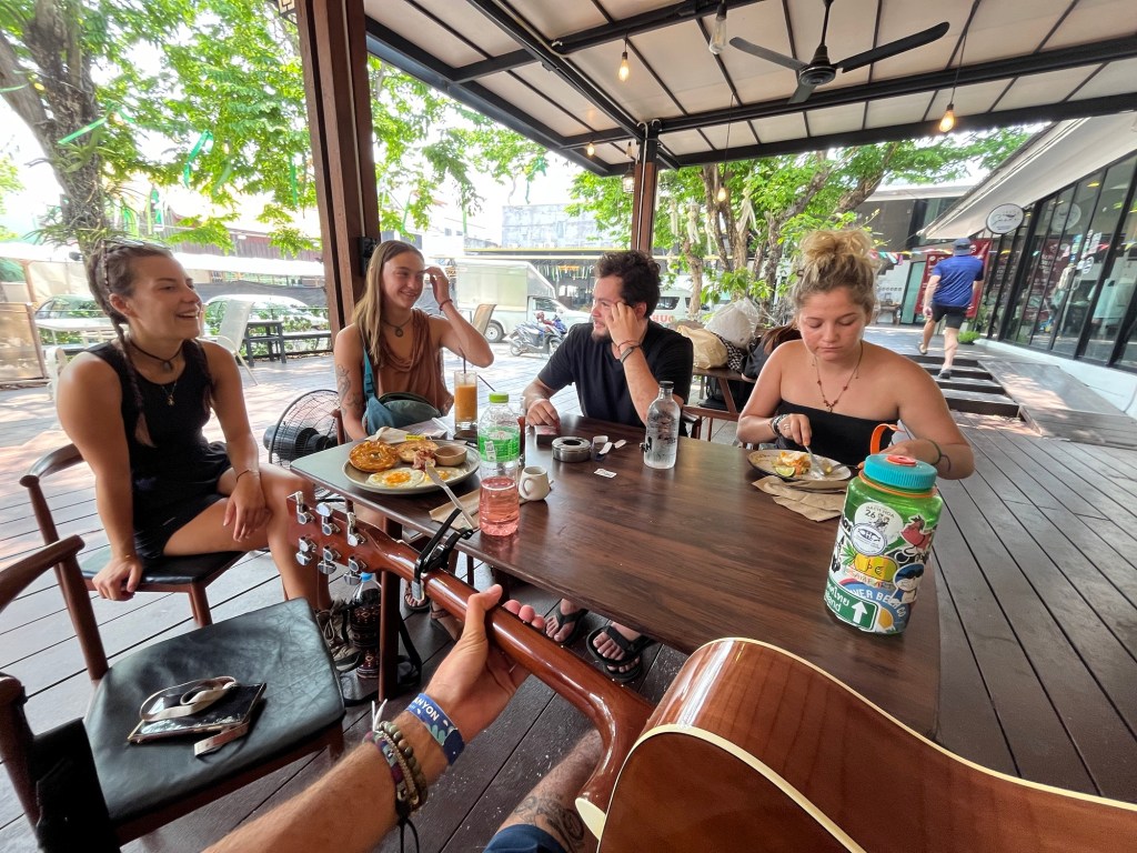 I serenaded my friends while they enjoyed their breakfasts and Elise ended up walking to our hostel within that time.