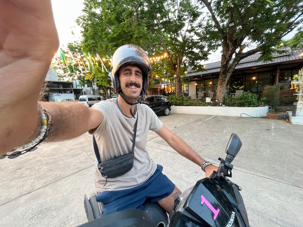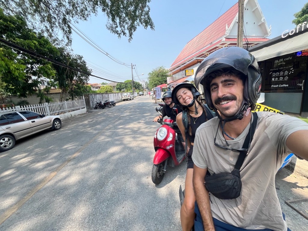 Our friends were heading to do a spa day, Elise, Dan, and I had other plans! We walked down the street and rented 2 motorbikes for 200 Baht each. This time, my motorbike was an automatic! It had been a while since I had ridden one, but I picked it up again seamlessly.