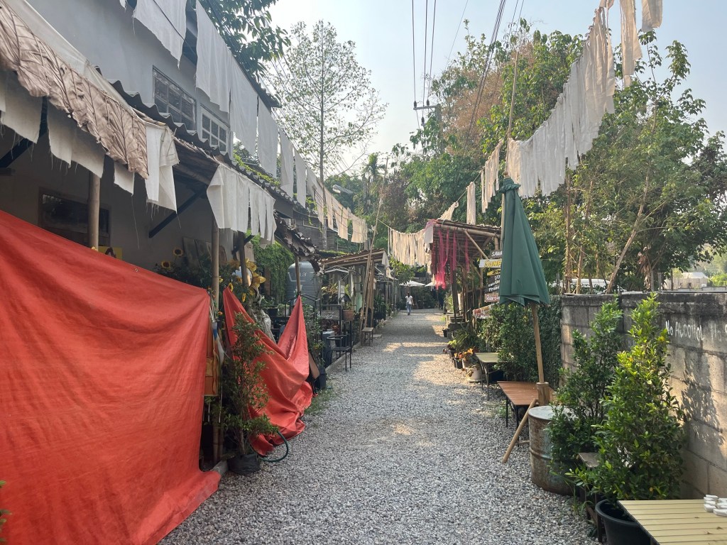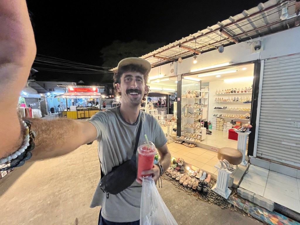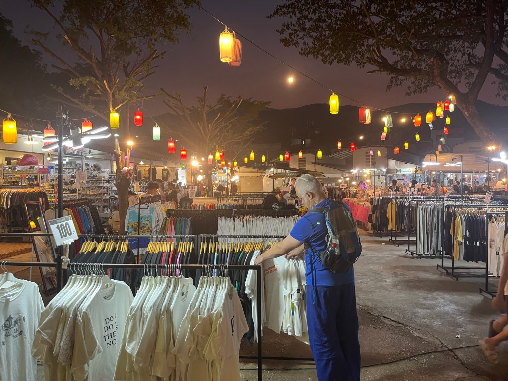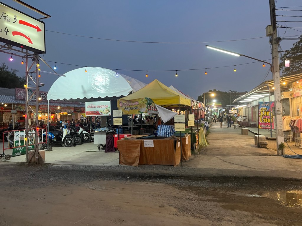 The night market wasn’t very busy, I’m assuming because of the festival down the road, but there were still plenty of stalls open! This night market was geared more towards clothes and had a lot of thrifted items which was cool to see! I ended up getting a new shirt for 190 Baht, a new cheap chain for my necklace that broke in Laos, a cheap smoothie, and the best part of it all… a 35 Baht meal for dinner!