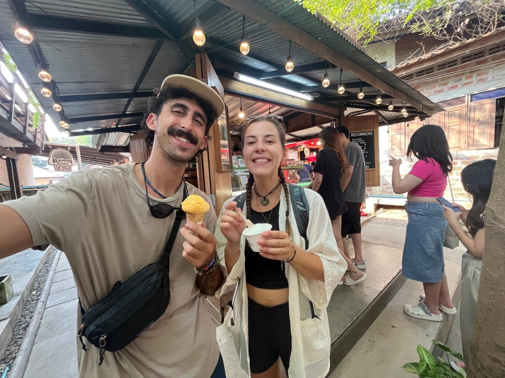 There was also a cheap ice cream stand. So for 40 Baht I got a Plango sorbet. I had never heard of this fruit before… so I looked it up and it’s a mix of a plum and mango! It was super tasty and I’m going to keep my eye out for them in markets now so I can try a real one.