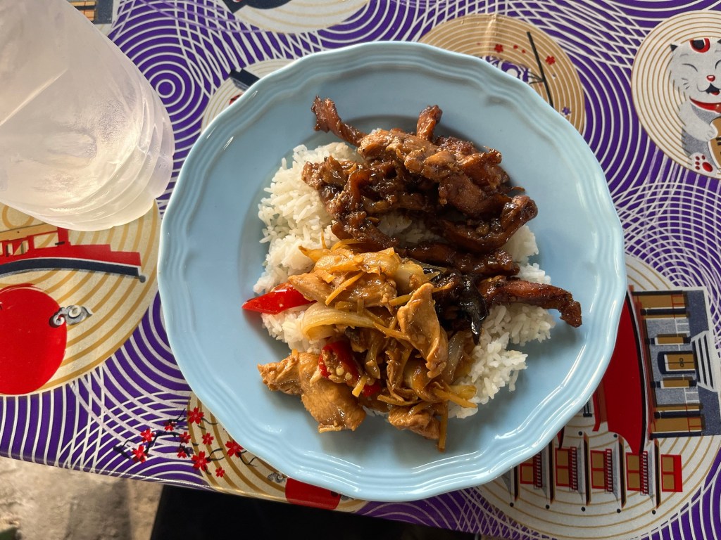 I finished off my night how I started my day, with a plate of chicken, basil, and rice. This time it was half the price, 40 Baht!