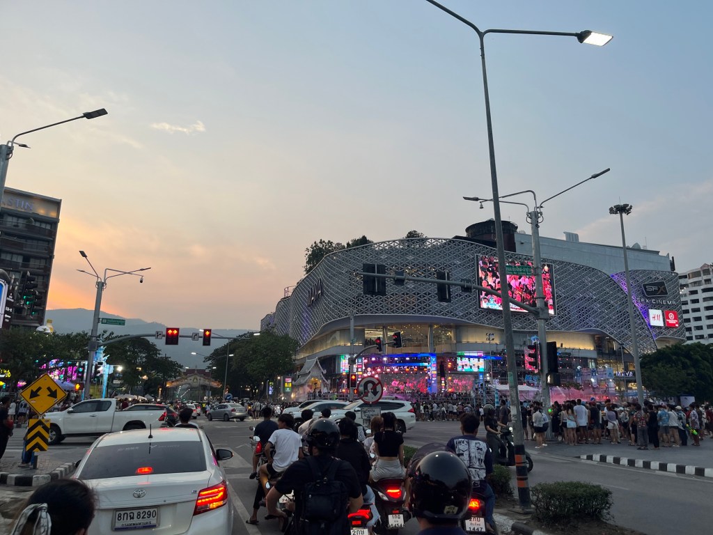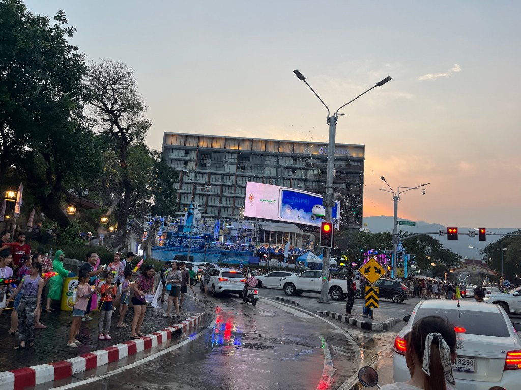 I said earlier that I was glad to not be getting soaked anymore… well… on this ride, I drove through a mega celebration for the end of Songkran! There were thousands of people dancing and water fighting to loud DJs. And of course plenty of buckets flying into the street as motorbikers flew by.