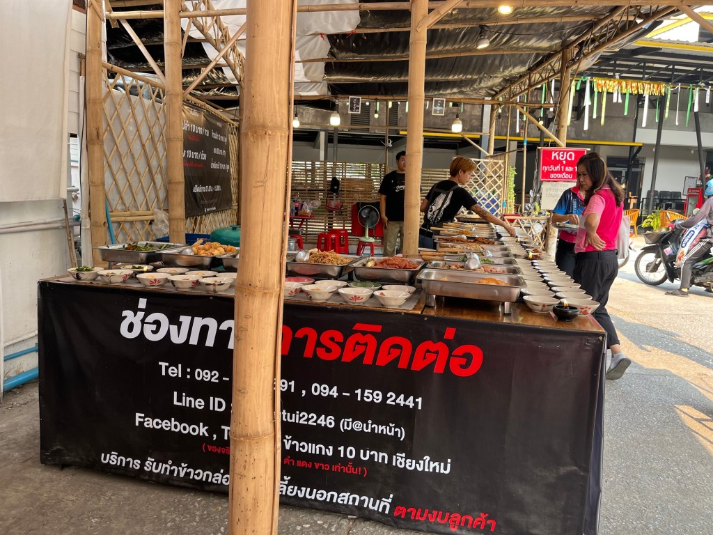 We finished packing and found a restaurant directly outside of our hostel that had been closed because of Songkran. This restaurant was 10 Baht per dish and 10 Baht for unlimited rice! I wish we could’ve ate here every day!