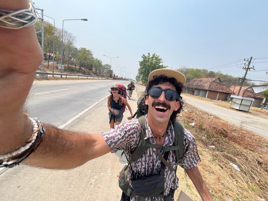 I was having a blast being outside in the shade, full of energy, and being goofy on the side of the road. But with every passing car my optimism that we would get out of Chiang Mai was dwindling. We got a lot of thumbs up back to us, smiles, and honks… but still no ride.