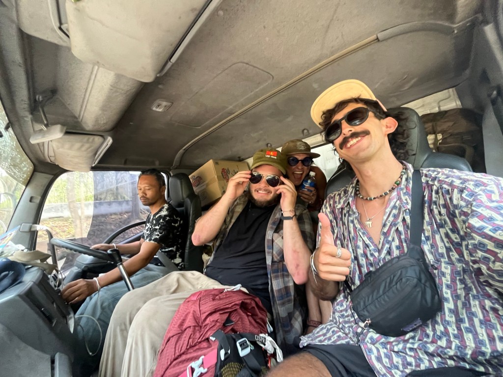 It was a pretty hot day to be in the bed of a truck, but the wind blowing on our faces cooled us off. This truck bed was nice and spacious too and had plenty of room for us and our bags.