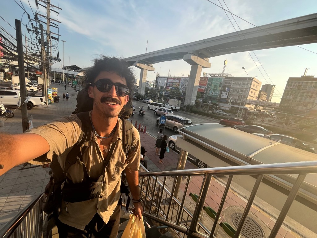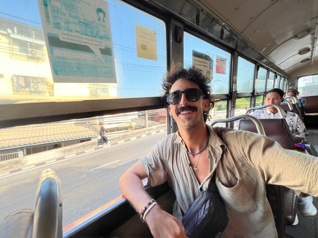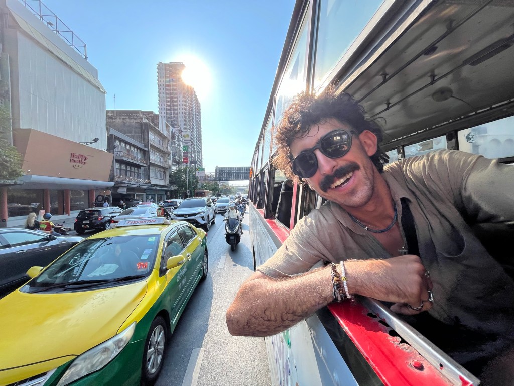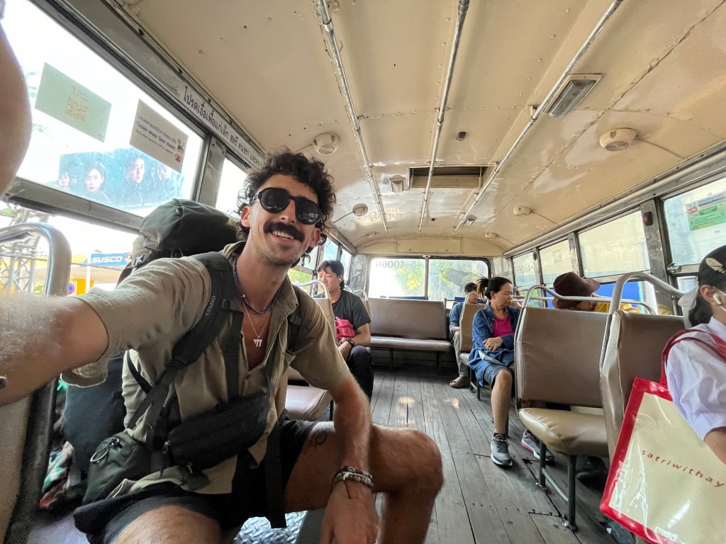 The busses in Thailand are pretty crazy. They won’t stop fully moving sometimes and people have to hop on and off of them… but they also don’t always stop at the bus stop because traffic is in the way. So people run to the bus in the middle of the road! It was a sight to see